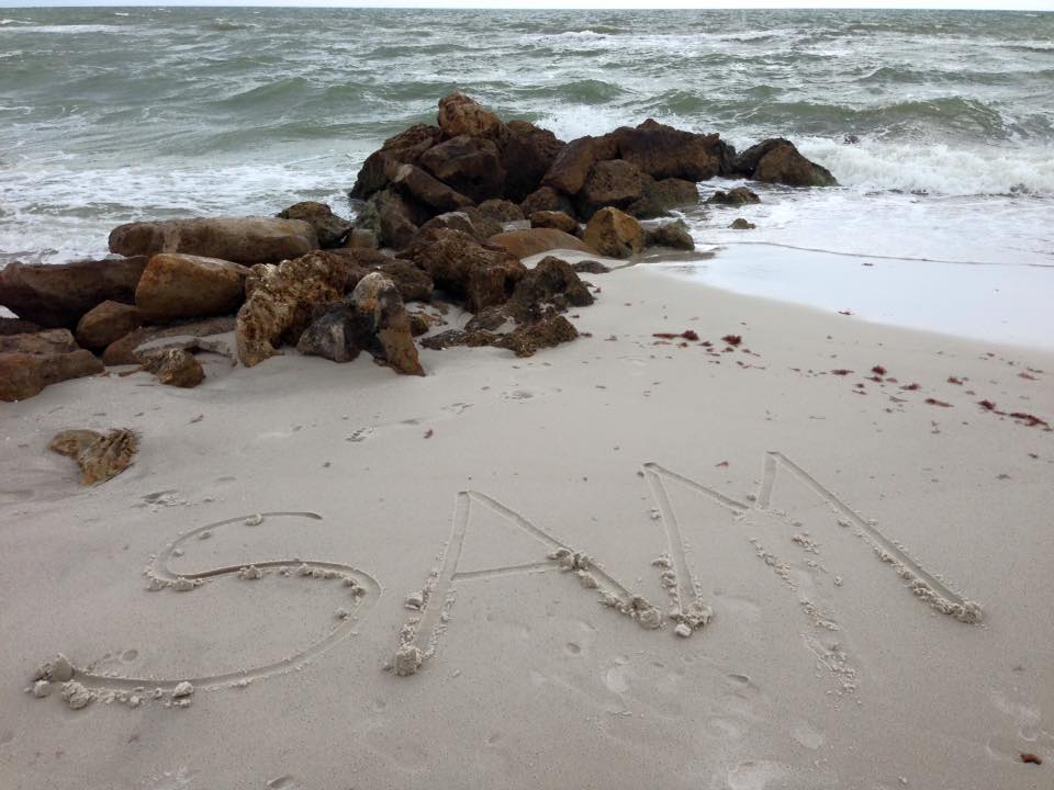 We spent time at the gulf on our favorite beach & wrote Sam’s name in the sand.
