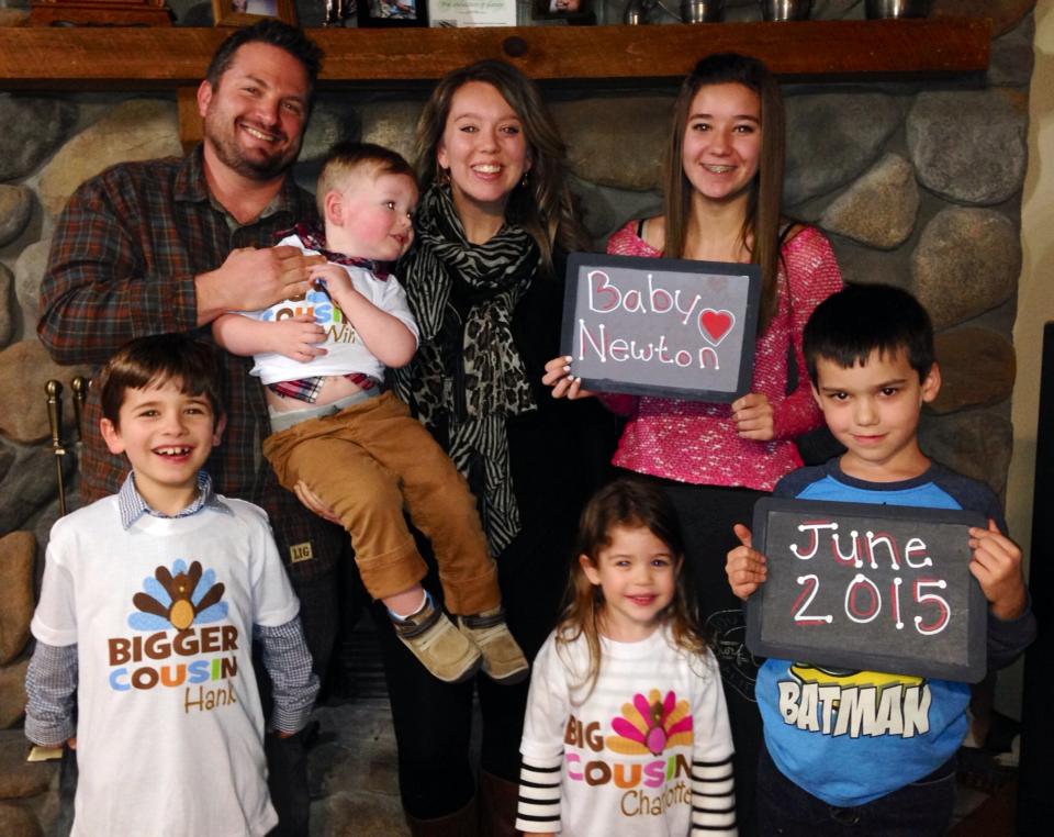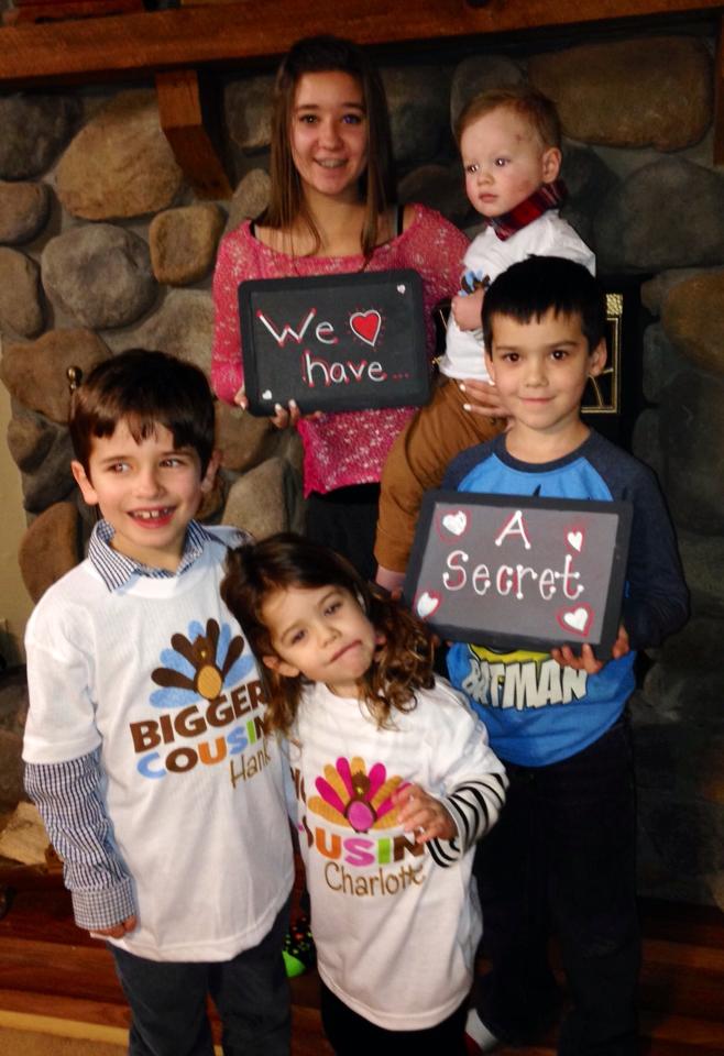Thanksgiving arrived and it was finally time to share our news!  We waited until it was time to say the Thanksgiving prayer and Ted shared with our entire family that we were pregnant!  It was such a joyous moment full of shouts of excitement, hugs, happy tears, and love.  I immediately pulled out the shirts I had made for some of Sam’s cousins and took a photo that we would use to announce to the world that we were pregnant!