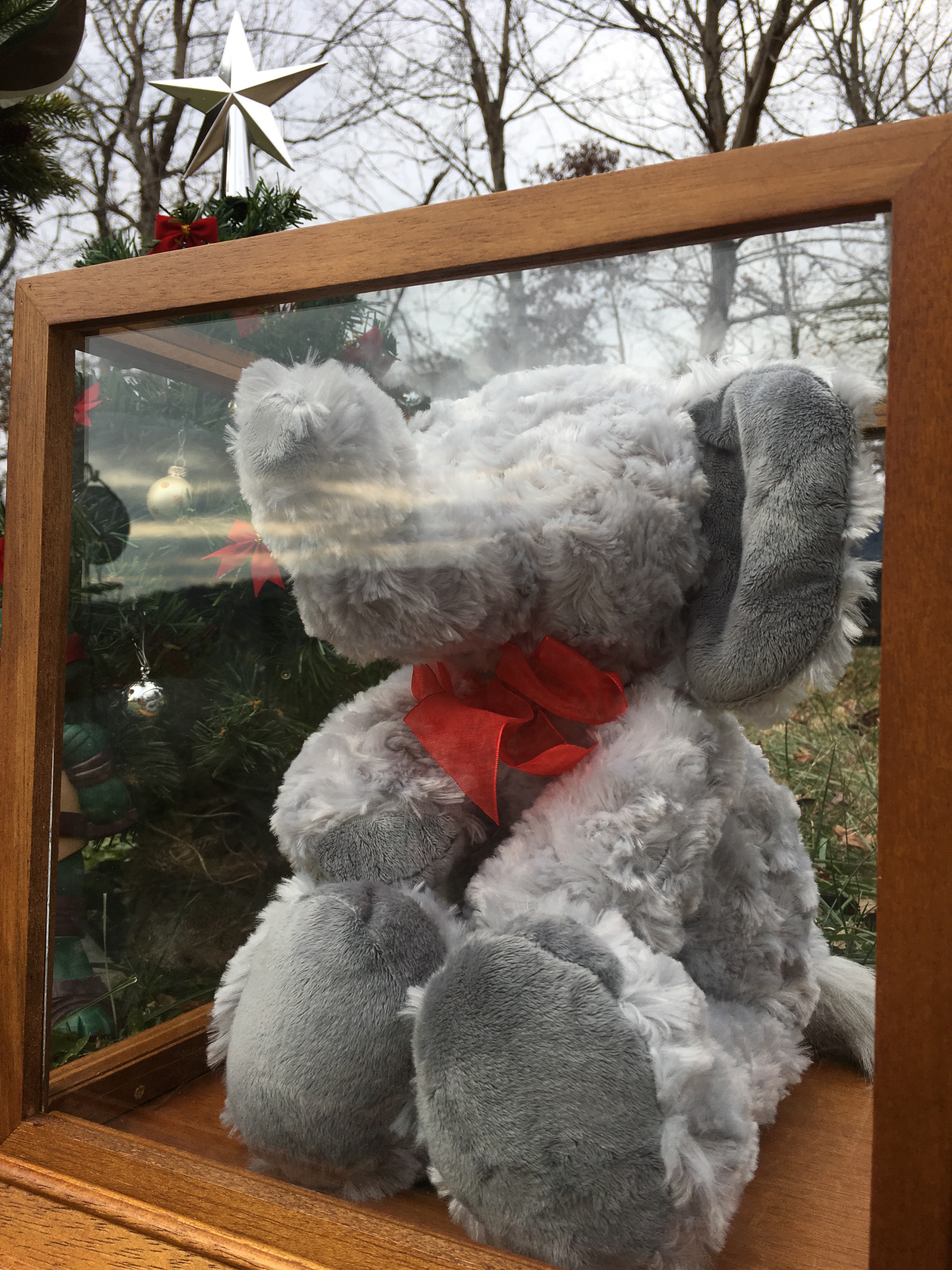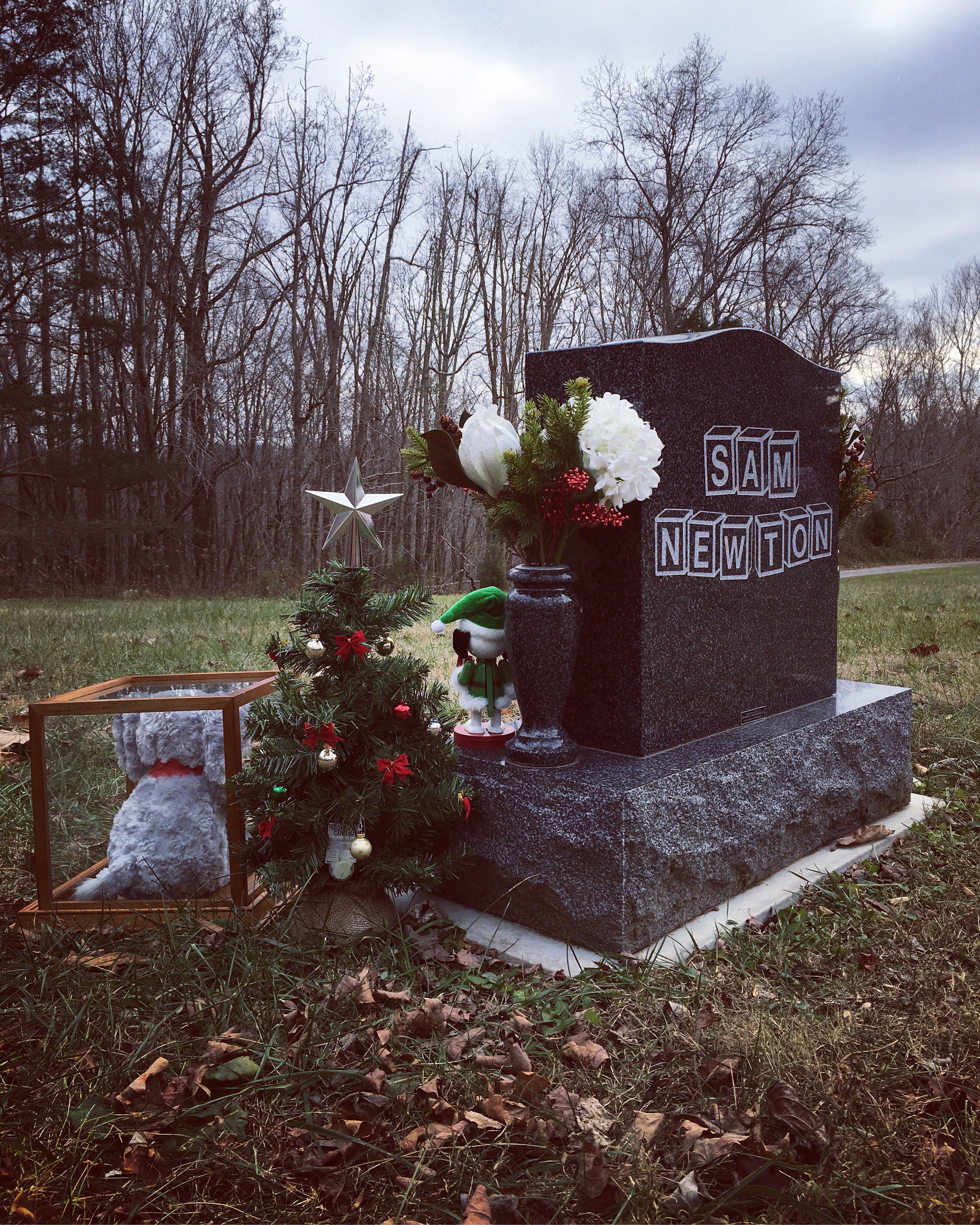 I intended to run into Hobby Lobby for picture frames, which I ended up foregoing, when I laid eyes on this elephant. I stared at him and knew he belonged to Sam. My heart began to sink because it was just another ‘thing’ that would get weathered if I chose to leave it for him but then remembered I was in Hobby Lobby and that maybe this elephant could be left with him. I decided my heart will never like decorating Sam’s grave for Christmas but that I have no choice in doing so. I bought my items and left.
