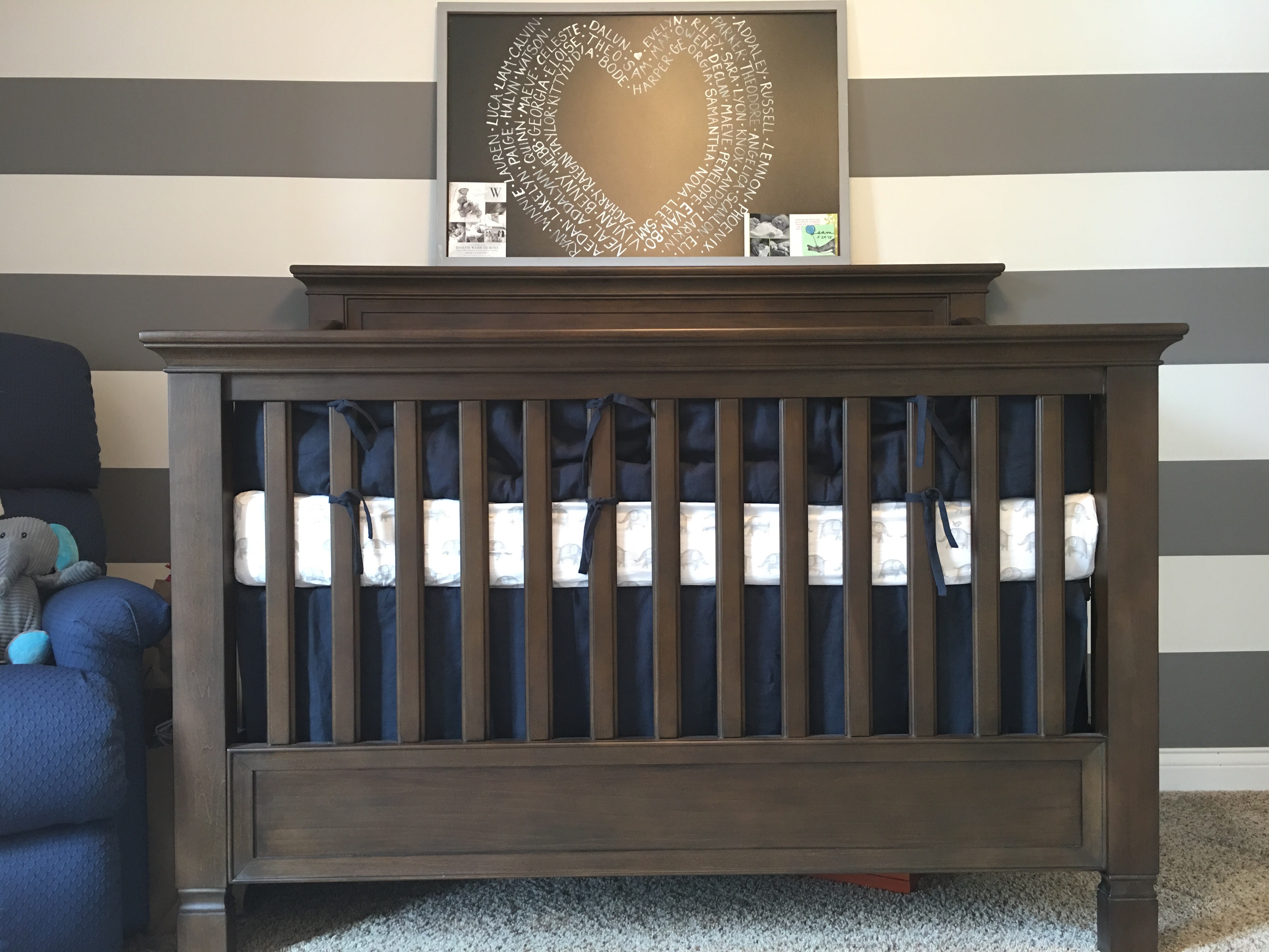 I sat in Sam’s room and cried, and cried. I held so much hope for his crib. We chose it just for him. I washed and rewashed his elephant sheets so that his perfect body had a perfectly clean place to sleep. I so carefully tied and retied each knot in his bumper knowing I’d have to take it down upon his arrival but insisting it be perfect for him.